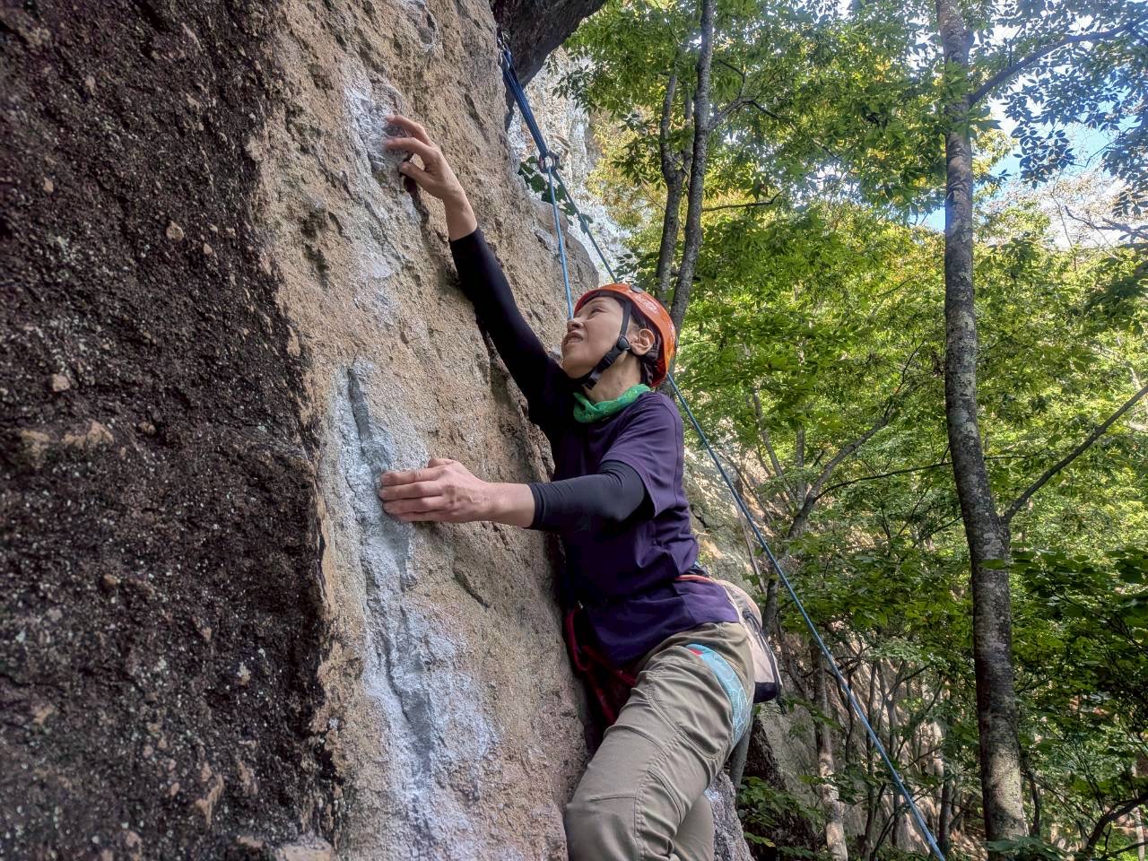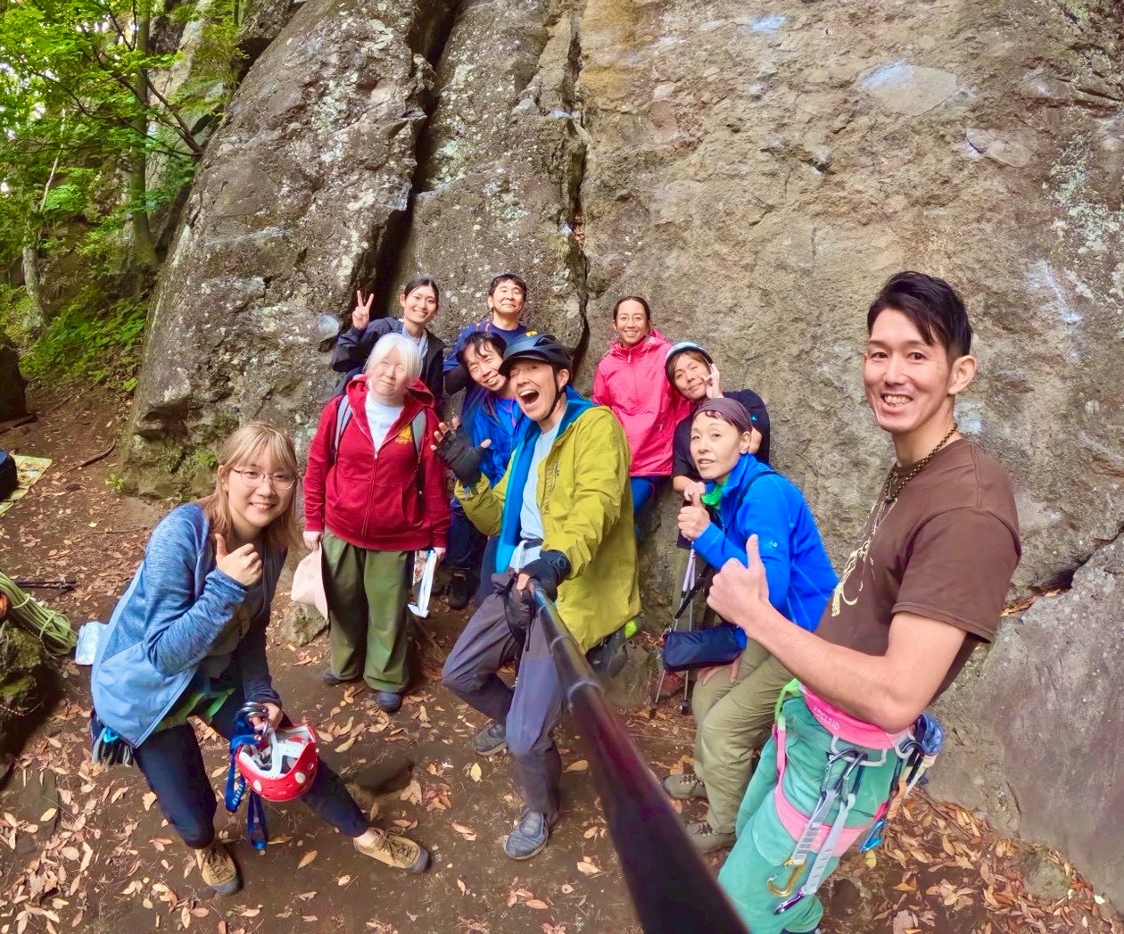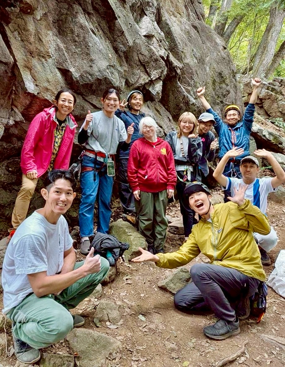 今回は久しぶりの参加者や外岩に慣れ始めた方など多様な顔ぶれで、最初は緊張気味だった皆さんも登るごとに表情がやわらぎ、岩の感触や自然の景色を楽しむ姿が印象的でした。