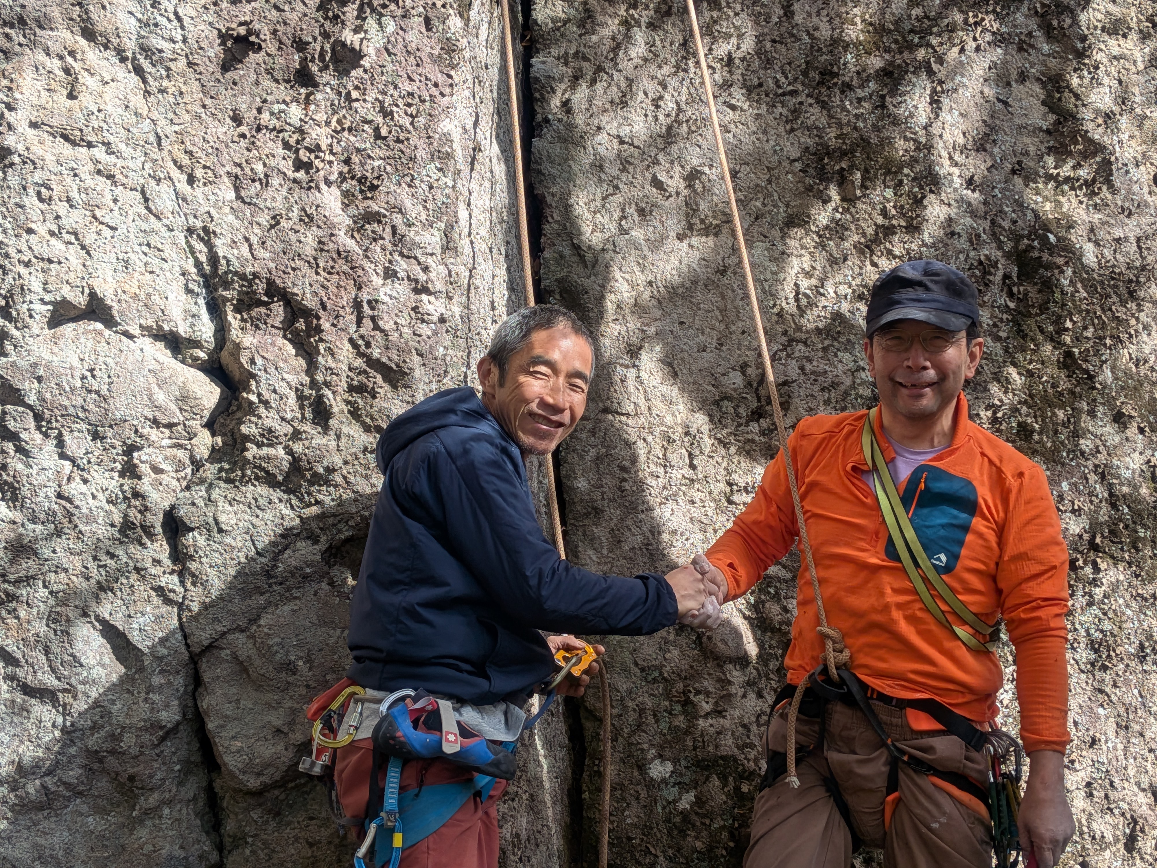 代表の小林と副代表の水谷がそれぞれ初登者となり、このルートが、障害者を含む多くの方々の外岩クライミングデビューの一歩や、岩場へ向かう新たな目的の一つとなってくれることを願って開拓いたしました。今後は、甲府幕岩新エリアのトポが完成する際には、本ルートも一緒に掲載される予定です。