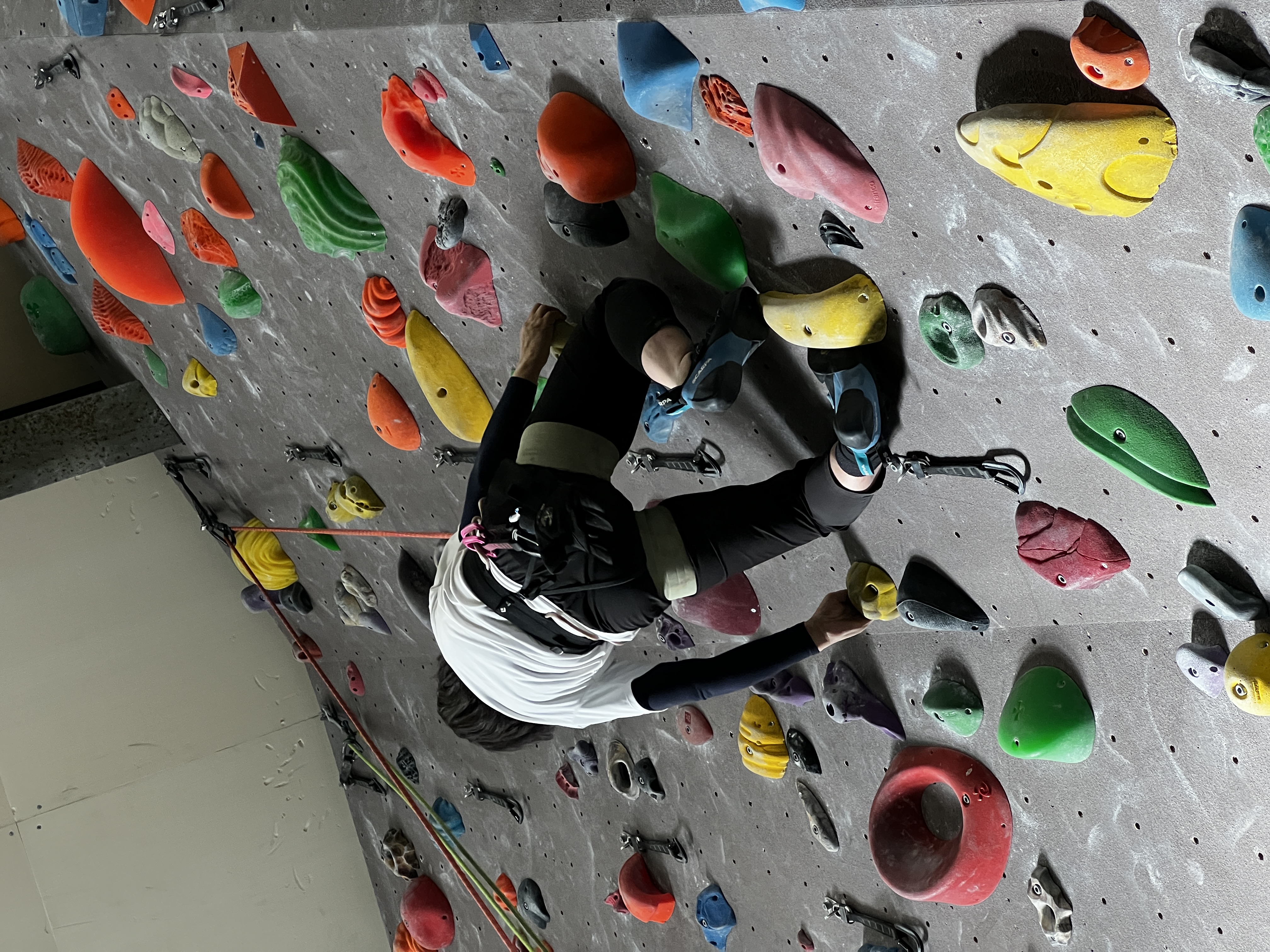 今日のガールズはクライミングを始めて3年になる両下肢欠損の女の子が初めて1番上のゴールまで登り切ることができ、大歓声でした!始めたばかりの頃は2手~3手進むのが精一杯で下から保護者やスタッフが支えての挑戦でしたが、最近ではすべて一人で挑戦して、遂に上まで登りきることができました!