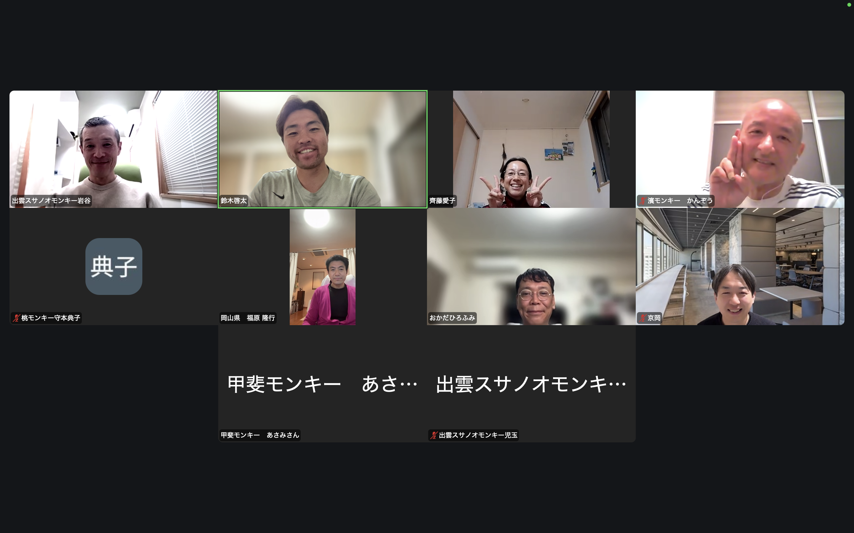 今回は、全国5地域(甲斐モンキー〈山梨〉、濱モンキー〈神奈川〉、桃モンキー〈岡山〉、出雲スサノオモンキー〈島根〉、いよモンキー〈愛媛〉からご参加いただきました。