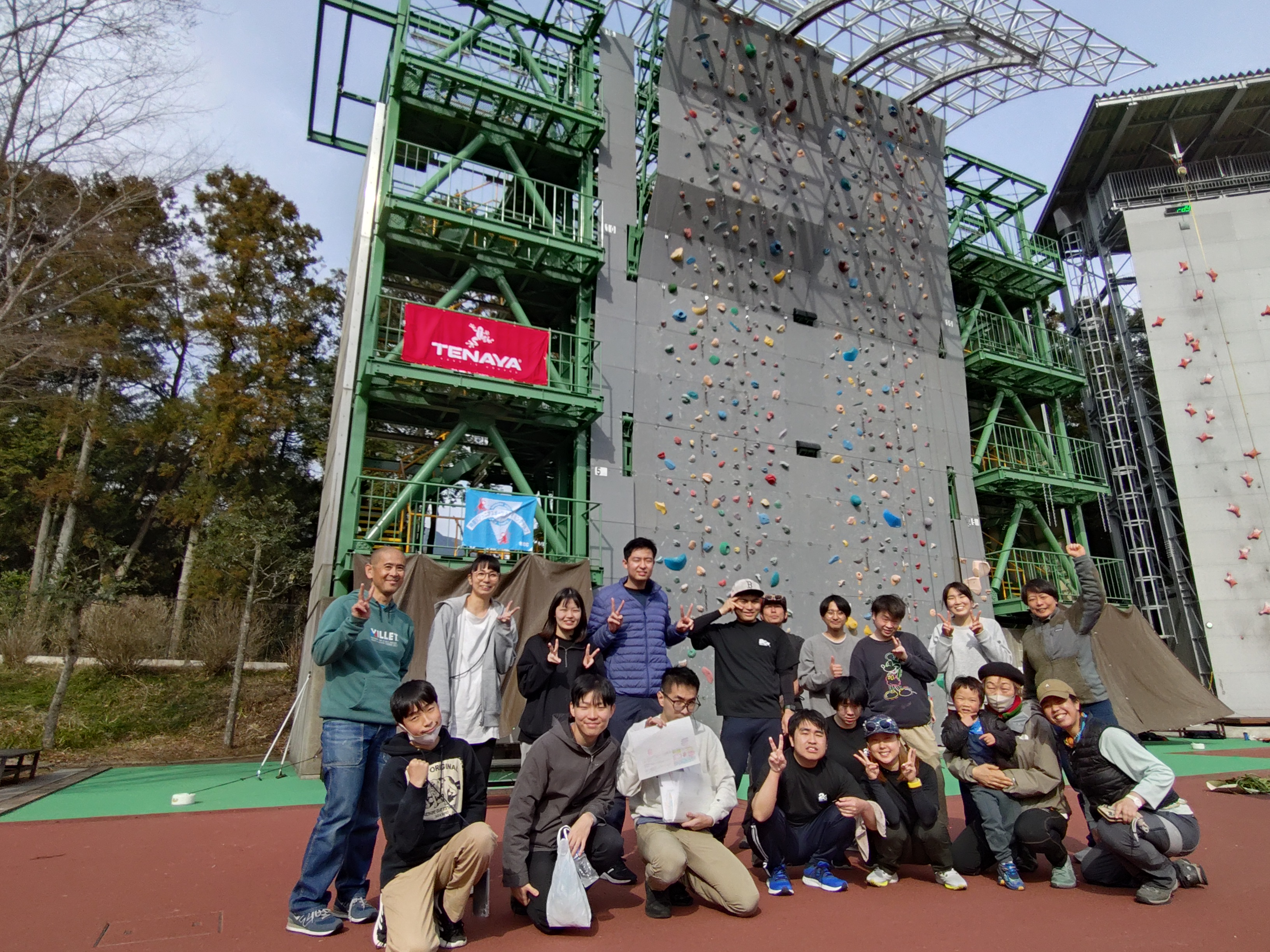 3月22日(日)は、神奈川県山岳スポーツセンターにて野外にある15mのクライミング壁に挑戦しました。参加者は、発達障害の青年6名とパートナー6名の皆さんでした。